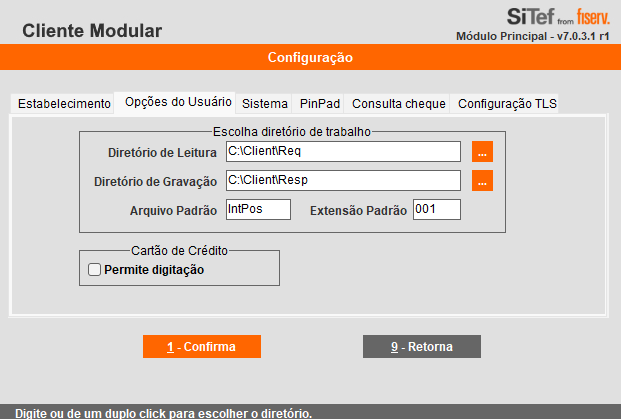 – Ao configurar o Sitef Express, mantenha os diretórios padrão para Leitura e Gravação: