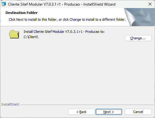 – Mantenha a pasta de instalação padrão (C:\Client\):