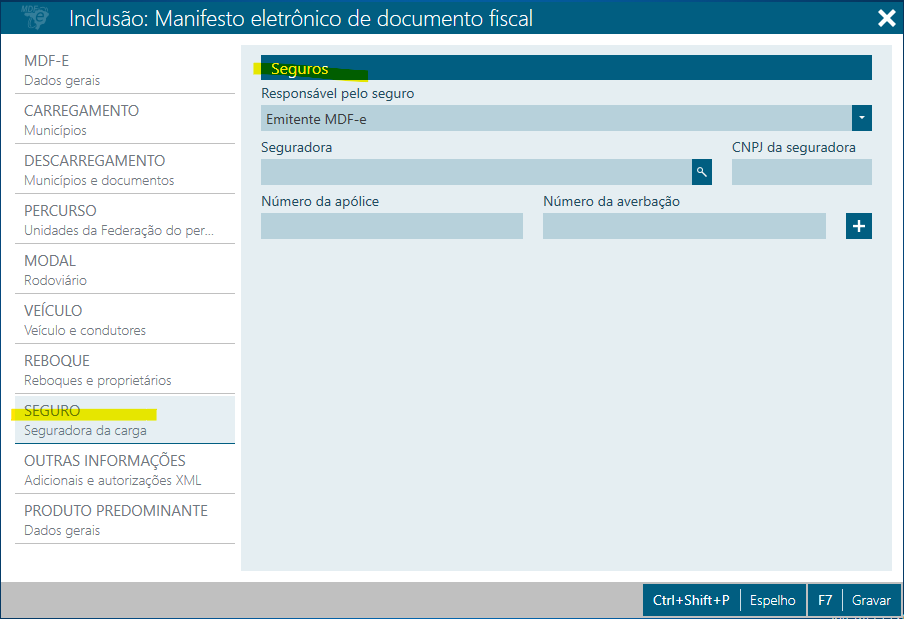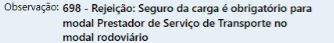 Rejeição MDFe: 698 – Seguro da carga é obrigatório para modal Prestador de Serviço de Transporte no modal rodoviário.