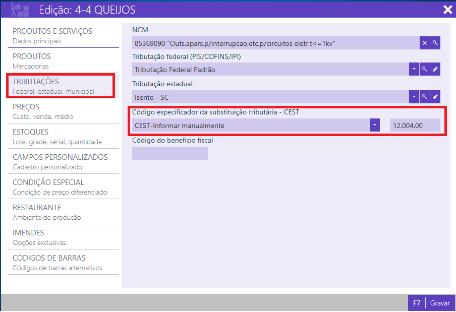 Essa rejeição ocorre porque a informação preenchida no campo de CEST que fica na guia tributações do cadastro do produto, está incorreto.